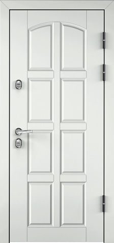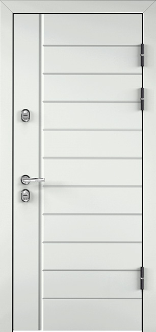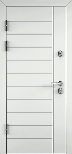 Эта белоснежная входная дверь с линиями №30 станет стильным и надежным элементом для любого интерьера. Благодаря отделке из панелей МДФ с ПВХ-покрытием, дверь выглядит элегантно и обладает высокой устойчивостью к внешним повреждениям. Внешний вид дверного полотна дополнен утонченными линиями, что придает ей современный, лаконичный вид. Прочный каркас из профильных труб 50х25 мм и лист металла толщиной 2 мм обеспечивают отличную защиту и долгий срок службы. Два контура резинового уплотнителя эффективно защищают от шума и холода, создавая комфорт в помещении. Замки Просам и Мосрентген с тремя ригелями гарантируют надежную безопасность. Дополнительно можно заказать зеркала, стеклопакеты и кованые элементы, что делает дверь универсальной для разных дизайнерских решений. Квартирная дверь входная белоснежного цвета с линиями №30 от производителя: быстрое изготовление и монтаж в Королеве, индивидуальные размеры, широкий выбор материалов и фурнитуры, официальная гарантия до 10 лет.
