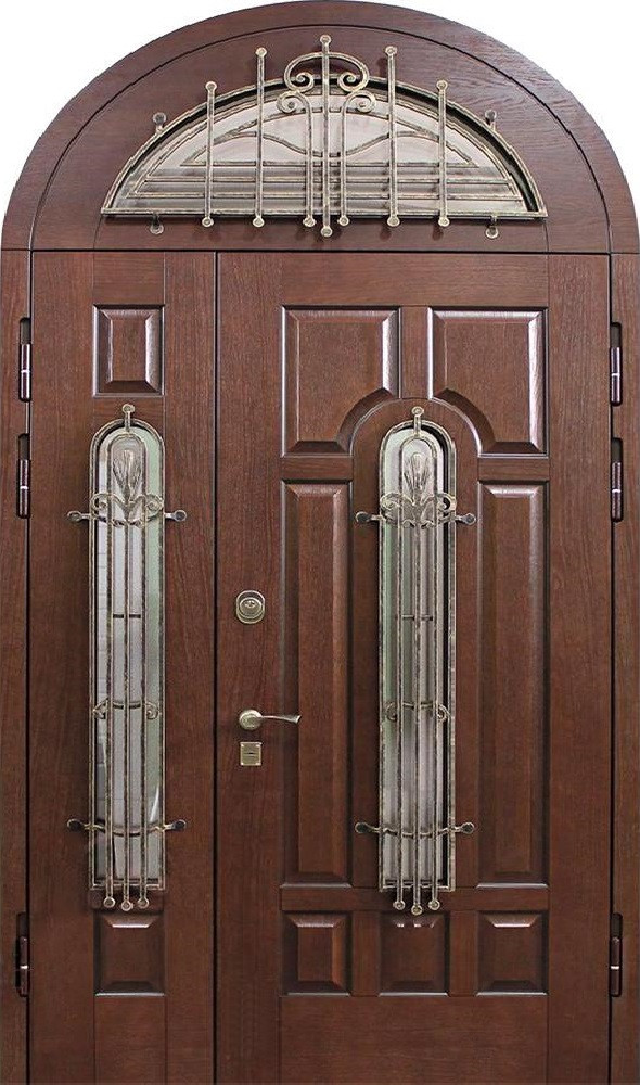 Арочные конструкции всегда придают входу выразительность и особый статус, а если добавить две створки и стеклянные вставки, дверь превращается в центральный элемент фасада. Натуральное дерево в отделке подчеркивает солидность и гармонично сочетается с металлом, из которого выполнено основание: каркас и полотно из профильных труб и стальной лист толщиной 2 мм обеспечивают прочность и долговечность. Для удобства и безопасности используются два замка разного типа — сувальдный и цилиндровый, оба с тремя ригелями, что делает взлом крайне затруднительным. Двухстворчатая арочная дверь со стеклом в частный дом №14 может изготавливаться любого размера и адаптироваться под архитектуру конкретного здания. Возможна установка дополнительных элементов: зеркало, стеклопакет, кованые детали или даже видеодомофон. Резиновое уплотнение по двум контурам защищает от сквозняков, а возможность выбора отделки и фурнитуры открывает простор для индивидуального дизайна. Двухстворчатая арочная дверь со стеклом в частный дом №14 от производителя: быстрое изготовление и монтаж в Королеве, индивидуальные размеры, широкий выбор материалов и фурнитуры, официальная гарантия до 10 лет.