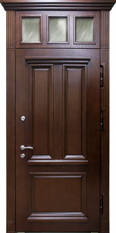 Дверь с сувальдным замком и фрамугой №34 идеально сочетает в себе стиль и надежность. Панель из натурального дерева, использованная как для внешней, так и для внутренней отделки, придает двери благородный и элегантный вид, делая её отличным выбором для помещений с классическим или современным интерьером. Каркас двери выполнен из профильной трубы 50х25 мм и усилен ребрами жесткости, что гарантирует прочность конструкции. Замки от производителей "Просам" и "Мосрентген" с тремя ригелями обеспечивают высокий уровень безопасности. Дверь оснащена уплотнителями с двумя контурами, что гарантирует отличную герметичность, а возможность замены замков и добавления кованых элементов делает её адаптируемой под любые требования. Кроме того, дверь можно дополнить зеркалом, стеклопакетом или видеодомофоном для еще большего комфорта. Входная дверь с сувальдным замком и фрамугой №34 от производителя: быстрое изготовление и монтаж в Королеве, индивидуальные размеры, широкий выбор материалов и фурнитуры, официальная гарантия до 10 лет.