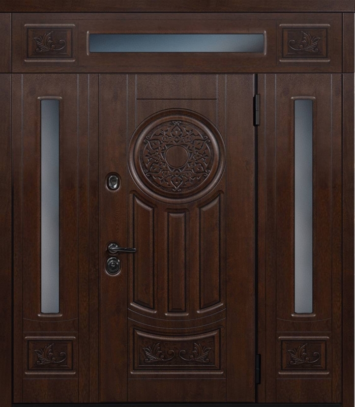 Эта нестандартная парадная дверь с фрамугой №6 — отличный выбор для тех, кто ценит элегантность и долговечность. Внешняя и внутренняя отделка из МДФ придает дверям стильный и современный вид, а также защиту от механических повреждений. МДФ устойчива к царапинам и вмятинам, что делает дверь идеальной для долгосрочной эксплуатации. Каркас из профильной трубы 50х25 мм и лист металла толщиной 2 мм обеспечивают прочность и надежность, а ребра жесткости из профильных труб гарантируют дополнительную устойчивость. В двери установлены блокираторы, два контура уплотнителей из резины, что повышает звуко- и теплоизоляцию. Замки от известных производителей, таких как Просам и Мосрентген, обеспечат надежную защиту. Возможность комбинировать отделку, добавлять зеркало, стеклопакет или кованые элементы позволяет легко адаптировать дверь под любые предпочтения. Нестандартная парадная дверь с фрамугой №6 от производителя: быстрое изготовление и монтаж в Королеве, индивидуальные размеры, широкий выбор материалов и фурнитуры, официальная гарантия до 10 лет.