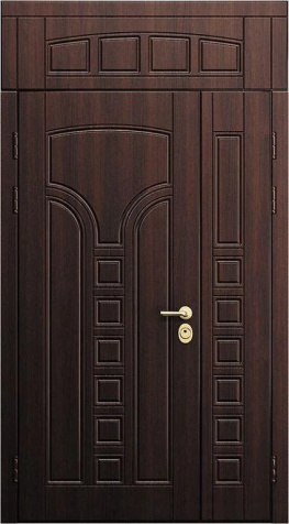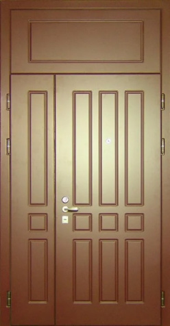 Входная дверь с остекленной фрамугой №1 привлекает внимание благодаря стильному и современному дизайну. Ее внешняя и внутренняя отделка из МДФ выглядит элегантно и долговечно, а также устойчива к механическим повреждениям, таким как царапины и вмятины. Каркас из профильной трубы и металл толщиной 2 мм гарантируют прочность и надежность. Наличие фрамуги позволяет создать эффектное освещение и визуально расширяет пространство, при этом сохранение теплоизоляции обеспечено двумя контурами резинового уплотнителя. Блокираторы и качественные замки, такие как Просам и Мосрентген, надежно защищают от взлома. Возможность дополнить дверь стеклопакетом, зеркалом или коваными элементами делает эту модель еще более универсальной для различных интерьеров. Входная дверь с остекленной фрамугой №1 от производителя: быстрое изготовление и монтаж в Королеве, индивидуальные размеры, широкий выбор материалов и фурнитуры, официальная гарантия до 10 лет.