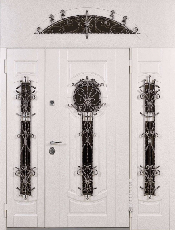 Входная дверь с кованой ручкой и фрамугой №6 представляет собой элегантное и надежное решение для тех, кто ценит не только безопасность, но и стиль. Эта модель идеально подойдет для оформления парадных входов в дома и офисы. Внешняя отделка из плиты МДФ придает двери современный и чистый вид, который сохраняется долго благодаря стойкости к внешним воздействиям. Благодаря профильной трубе с толщиной металла 2 мм и ребрам жесткости, конструкция двери гарантирует прочность и долговечность. Дополнительный элемент — кованая ручка, которая добавляет изысканности и подчеркивает высокий класс изделия. Стандартная комплектация не включает шумо- и теплоизоляцию, однако она может быть установлена по желанию. Резиновый уплотнитель с двумя контурами обеспечит хорошую герметичность, защищая от ветра и пыли. Подходит для установки как в частных домах, так и в офисах, привлекая внимание своим необычным и стильным дизайном. Входная дверь с кованой ручкой и фрамугой №6 от производителя: быстрое изготовление и монтаж в Королеве, индивидуальные размеры, широкий выбор материалов и фурнитуры, официальная гарантия до 10 лет.