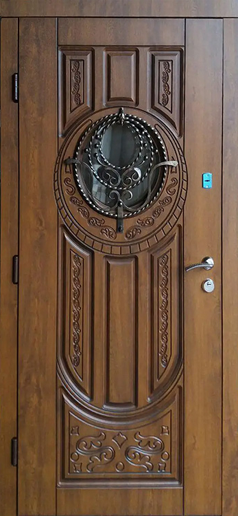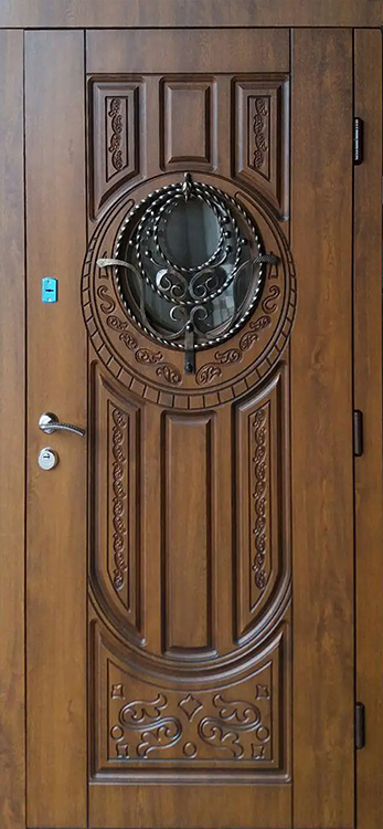 Владельцы коттеджей ценят входные конструкции, которые одинаково подчеркивают статус и защищают от любых внешних факторов. Здесь удачно сочетаются прочный металл и массив дуба, придающий поверхности солидность и благородство. Натуральное дерево сохраняет цвет и текстуру долгие годы, устойчиво к механическим повреждениям и перепадам температуры. Внутри конструкции скрыт стальной каркас толщиной 1,5 мм с ребрами жесткости и противосъёмными блокираторами, что делает полотно практически неприступным. Особое преимущество — терморазрыв коробки и полотна, благодаря которому дверь не промерзает даже в сильные морозы и сохраняет тепло в доме. Именно на этом контрасте надежности и эстетики выделяется железная дверь со стеклом и ковкой №21, украшенная изящными декоративными элементами. Три контура магнитного уплотнения обеспечивают герметичность, а система замков Kale Kilit повышает уровень безопасности, при этом конструкция допускает установку современных умных решений и дополнительных декоративных опций. Железная дверь со стеклом и ковкой №21 от производителя: быстрое изготовление и монтаж в Королеве, индивидуальные размеры, широкий выбор материалов и фурнитуры, официальная гарантия до 10 лет.