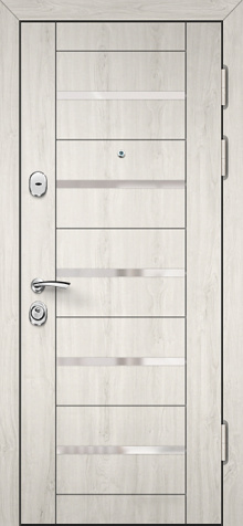 Прочная стальная конструкция с листом металла толщиной 2 мм и надежными ребрами жесткости делает эту модель отличным вариантом для квартир, частных домов и офисов. Каркас и полотно выполнены из профильной трубы, что обеспечивает долговечность и сопротивление взлому, а двойной контур уплотнения защищает от сквозняков и постороннего шума. Отделка с обеих сторон выполнена накладками из МДФ, которые не только придают аккуратный и современный внешний вид, но и отличаются стойкостью к царапинам и ударам. Стальная входная дверь в квартиру №160 может быть изготовлена в любых размерах и вариантах открывания, а систему безопасности дополняют два замка российского производства: сувальдный Просам и цилиндровый Мосрентген, каждый с тремя мощными ригелями. По желанию заказчика возможна установка зеркала, стеклопакета, ковки или умного замка, что превращает изделие из просто двери в продуманное решение для комфортной и безопасной жизни. Стальная входная дверь в квартиру №160 от производителя: быстрое изготовление и монтаж в Королеве, индивидуальные размеры, широкий выбор материалов и фурнитуры, официальная гарантия до 10 лет.