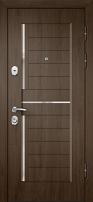 Глубокий оттенок венге всегда выглядит благородно и современно, а декоративная панель придаёт полотну завершённый стильный образ. Дверь МДФ цвета венге с внешней декоративной панелью №538 подходит для установки как в частных домах, так и в квартирах или офисах, где ценят сочетание надёжности и эстетики. Плиты МДФ отличаются прочностью, стойкостью к мелким механическим повреждениям и долго сохраняют первоначальный вид без потери насыщенности цвета. Конструкция выполнена на основе стального каркаса с листом металла толщиной 2 мм и рёбрами жёсткости, что обеспечивает высокий уровень прочности. Два контура уплотнения повышают комфорт эксплуатации, защищая от сквозняков. Дополнительно дверь можно оснастить шумо- и теплоизоляцией, зеркалом, стеклопакетом или коваными элементами, сделав её не только практичной, но и индивидуальной деталью интерьера. Дверь МДФ цвета венге с внешней декоративной панелью №538 от производителя: быстрое изготовление и монтаж в Королеве, индивидуальные размеры, широкий выбор материалов и фурнитуры, официальная гарантия до 10 лет.
