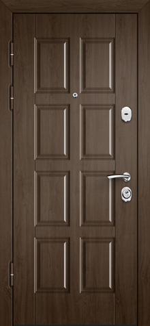 Надёжность и строгая функциональность – вот что олицетворяет входная дверь в квартиру стал №77. Её прочная основа выполнена из профильной трубы и стального листа толщиной 2 мм с дополнительными рёбрами жёсткости, что делает конструкцию устойчивой к нагрузкам и долговечной. Внутри и снаружи использованы накладки МДФ, практичный материал, который сохраняет аккуратный вид, не боится случайных царапин и хорошо подходит для помещений любого типа. Два замка — сувальдный Просам и цилиндровый Мосрентген — обеспечивают многоуровневую защиту, а при желании их можно заменить на более современные или даже умные электронные механизмы. Дверь комплектуется двумя контурами резинового уплотнителя, которые препятствуют проникновению сквозняков и уличного шума, а при необходимости конструкция легко дополняется шумо- и теплоизоляцией. Такой вариант одинаково уместен в квартире, частном доме или офисе, где ценят баланс безопасности и практичности. Входная дверь в квартиру стал №77 от производителя: быстрое изготовление и монтаж в Королеве, индивидуальные размеры, широкий выбор материалов и фурнитуры, официальная гарантия до 10 лет.