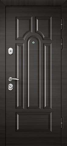 Дверь «Глухая металлическая входная дверь в квартиру Венге №9» станет надежным защитником вашего жилья, сочетая функциональность и стиль. Внешняя и внутренняя отделка выполнены из МДФ с покрытием ПВХ, что делает её стойкой к внешним воздействиям и механическим повреждениям. Цвет венге придаёт двери элегантность и гармонично вписывается в любой интерьер. Конструкция из профильной трубы 50х25 мм и металла толщиной 2 мм гарантирует долговечность и безопасность. В этой модели предусмотрены два контура уплотнителей, которые обеспечивают хорошую тепло- и звукоизоляцию. Замки российского производства — сувальдный и цилиндровый — надежно защищают от взлома. Возможность замены замков на более сложные модели или установке видеодомофона делает её ещё более универсальной. Эта дверь идеально подходит для установки в квартиру, предлагая не только безопасность, но и стильный внешний вид. Глухая металлическая входная дверь в квартиру Венге №9 от производителя: быстрое изготовление и монтаж в Королеве, индивидуальные размеры, широкий выбор материалов и фурнитуры, официальная гарантия до 10 лет.