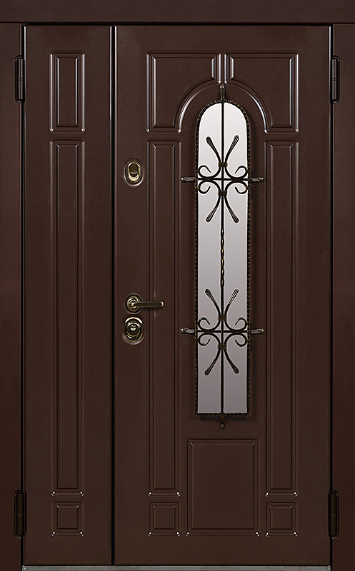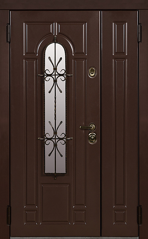 Эта металлическая двухстворчатая дверь с арочным стеклопакетом №15 представляет собой идеальный баланс между эстетикой и прочностью. Арочное стекло добавляет в её дизайн утончённость, а ковка в декоре придаёт изысканный, но в то же время крепкий и надёжный вид. Плита МДФ, используемая как для внешней, так и для внутренней отделки, не только сохраняет прекрасный внешний вид, но и устойчива к механическим повреждениям. Металлическая двухстворчатая дверь с арочным стеклопакетом №15 от производителя: быстрое изготовление и монтаж в Королеве, индивидуальные размеры, широкий выбор материалов и фурнитуры, официальная гарантия до 10 лет.