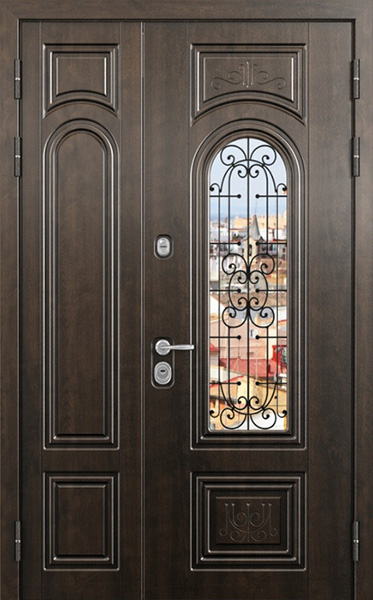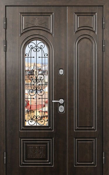 Двупольная стальная дверь со стеклопакетом и кованым узором №24 станет отличным выбором для тех, кто ценит не только безопасность, но и стиль. Внешняя и внутренняя отделка выполнены из МДФ, что придает двери элегантный и современный вид, а также обеспечивает высокую устойчивость к механическим повреждениям и износу. Стеклопакет и кованые элементы добавляют изысканности и уникальности, при этом сохраняя прочность конструкции. Двупольная стальная дверь со стеклопакетом и кованым узором №24 от производителя: быстрое изготовление и монтаж в Королеве, индивидуальные размеры, широкий выбор материалов и фурнитуры, официальная гарантия до 10 лет.