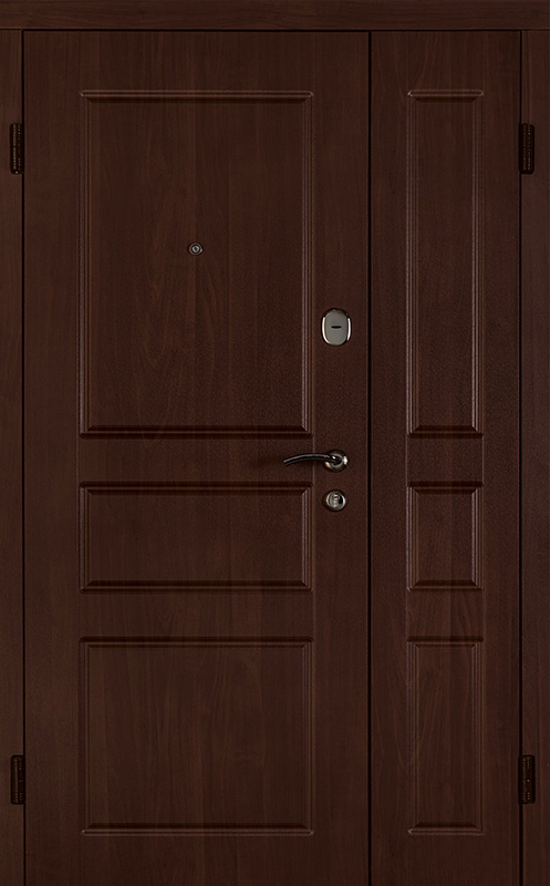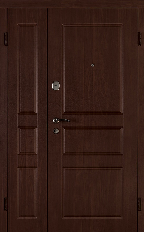 Коричневая входная полуторная дверь с филенчатой створкой №4 – это надежное и стильное решение для вашего дома или офиса. Внешняя и внутренняя отделка из МДФ с ПВХ обеспечивает долговечность и устойчивость к повреждениям, сохраняя при этом элегантный внешний вид. Прочные материалы конструкции, такие как профильная труба 50х25 мм и лист металла толщиной 2 мм, гарантируют стабильность и безопасность. Ребра жесткости из профильных труб 40х25 мм усиливают дверное полотно, а уплотнение с двумя контурами надежно защищает от внешних факторов. Несмотря на отсутствие терморазрыва, в двери реализованы терморазрывы в коробке и полотне, что помогает улучшить теплоизоляцию. Возможность выбора дополнительных опций, таких как шумоизоляция, делает эту дверь универсальной для различных условий эксплуатации. Коричневая входная полуторная дверь с филенчатой створкой №4 от производителя: быстрое изготовление и монтаж в Королеве, индивидуальные размеры, широкий выбор материалов и фурнитуры, официальная гарантия до 10 лет.