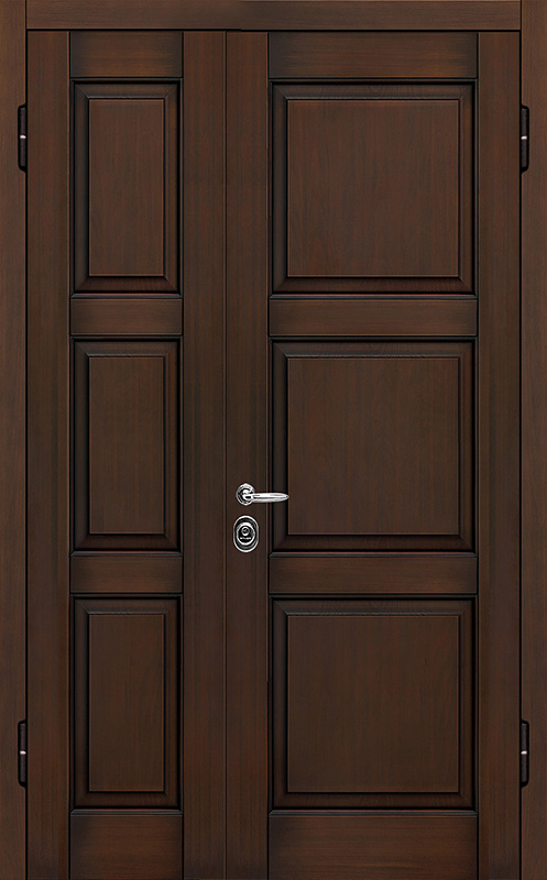 Двойная филенчатая дверь для загородного дома венге №7 сочетает в себе элегантность и прочность. Ее внешняя отделка выполнена из панелей МДФ с ПВХ, что придает двери современный вид, а также обеспечивает устойчивость к механическим повреждениям и долговечность. Каркас из профильной трубы 50х25 мм и полотно толщиной 2 мм гарантируют надежность и устойчивость к нагрузкам. Ребра жесткости из профильных труб 40х25 мм усиливают конструкцию, а уплотнение с двумя контурами защищает от проникновения влаги и пыли. Замки "Просам" и "Мосрентген" с тремя ригелями обеспечивают высокий уровень безопасности. В дверь можно добавить дополнительные элементы, такие как стеклопакет, зеркало или кованые детали, что позволяет адаптировать ее под любой интерьер. Терморазрывы в коробке и полотне способствуют лучшей теплоизоляции, обеспечивая комфорт в любое время года. Двойная филенчатая дверь для загородного дома венге №7 от производителя: быстрое изготовление и монтаж в Королеве, индивидуальные размеры, широкий выбор материалов и фурнитуры, официальная гарантия до 10 лет.