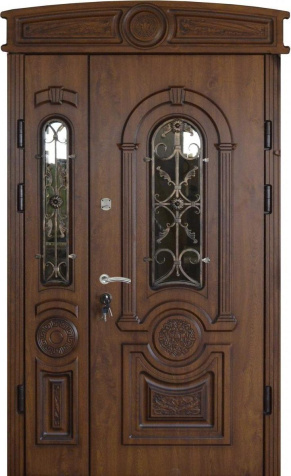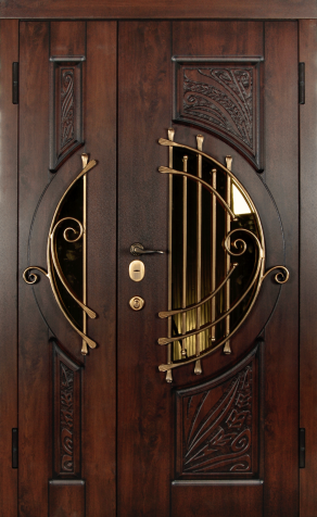 Эта модель выделяется своим масштабом и декоративностью: двухстворчатая дверь со вставками и ковкой №2 подчеркивает парадность входа и придает фасаду респектабельность. Основу составляет прочный каркас из стальных профильных труб с листом металла толщиной 2 мм и ребрами жесткости, что обеспечивает долговечность и защиту. Снаружи и внутри полотно облицовано накладками МДФ, которые позволяют воплотить различные варианты текстур и оттенков, сохраняя устойчивость к механическим повреждениям и влиянию внешней среды. Кованые элементы вносят в образ двери нотку изысканности и индивидуальности, делая ее центральным акцентом всего фасада. Для безопасности предусмотрены два замка турецкого производителя Kale Kilit — цилиндровый и сувальдный, каждый с ригелями, усиливающими защиту. Такая дверь сочетает надежность металлической конструкции с эстетикой классического дизайна, превращая вход в настоящий архитектурный акцент. Двухстворчатая дверь со вставками и ковкой №2 от производителя: быстрое изготовление и монтаж в Королеве, индивидуальные размеры, широкий выбор материалов и фурнитуры, официальная гарантия до 10 лет.
