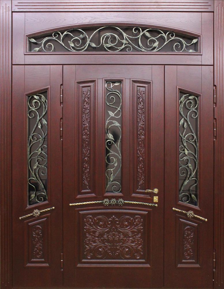 Большая входная дверь в частный дом со стеклом №328 создана для тех, кто ценит солидность и выразительный облик парадного входа. Широкое полотно на основе стальной конструкции с профилем 50х25 мм и листом металла толщиной 2 мм обеспечивает надежность и устойчивость к нагрузкам, а массив дуба в отделке придает дверному блоку статусный вид и долговечность. Натуральное дерево отличается стойкостью к повреждениям и долго сохраняет свой первозданный оттенок, что особенно важно для фасадных решений. Вставка из стекла добавляет естественного света в холл и делает интерьер более гостеприимным. Двойной контур резинового уплотнителя защищает от сквозняков, а наличие блокираторов повышает уровень безопасности. Такая дверь гармонично смотрится в коттеджах и частных домах, где парадный вход становится главным акцентом архитектуры. Большая входная дверь в частный дом со стеклом №328 от производителя: быстрое изготовление и монтаж в Королеве, индивидуальные размеры, широкий выбор материалов и фурнитуры, официальная гарантия до 10 лет.