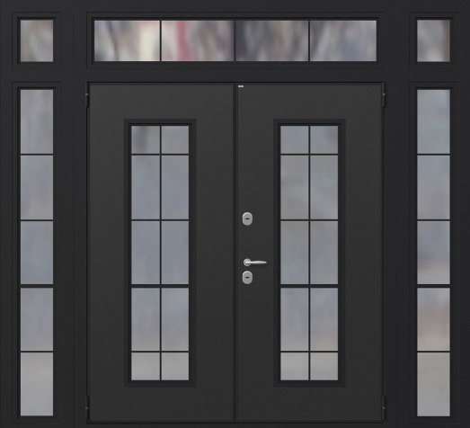 Если проём очень широкий, но не хочется устанавливать двустворчатую модель, используют комбинированные решения. Например, широкая входная дверь со стеклом или глухими боковыми вставками. По бокам основной створки могут быть узкие неподвижные панели: они уменьшают фактическую ширину открывающейся части и украшают вход. Такие вставки нередко содержат стеклопакет с декоративной решёткой или ковкой – подобный дизайн популярен для загородных коттеджей. Остекление выполняется из ударопрочного материала, чтобы дверь оставалась надёжной и безопасной.