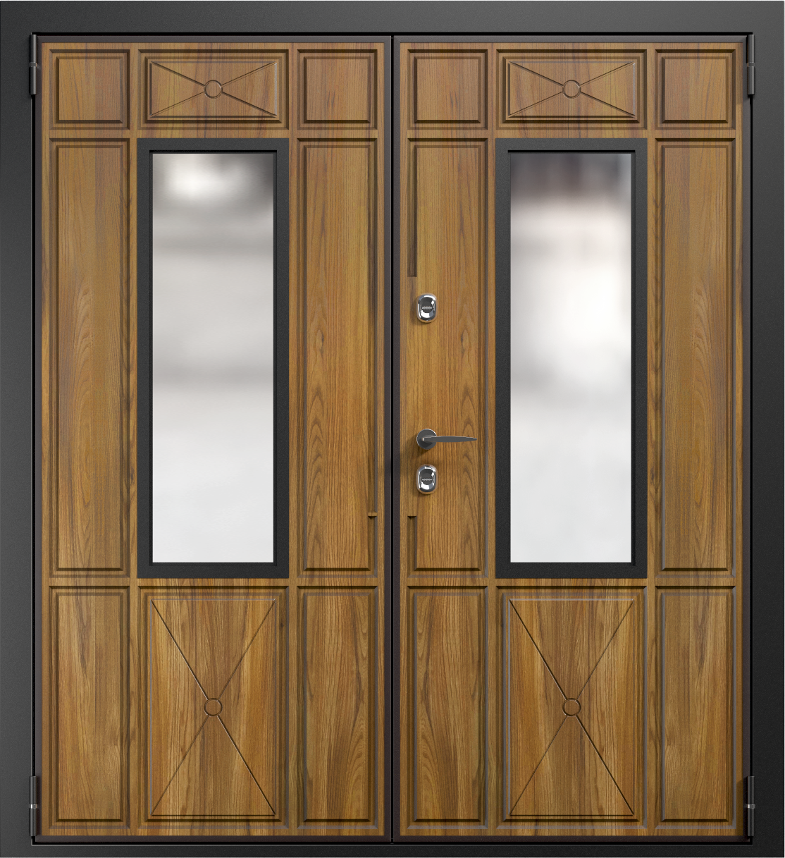 Двустворчатая МДФ дверь с окном №3 идеально подойдёт для установки в просторных домах, где требуется не только надёжная защита, но и стильный внешний вид. Внешняя отделка из панелей МДФ ПВХ придаёт двери элегантность, а окно добавляет лёгкости и позволяет естественному свету проникать в помещение. Конструкция из профильной трубы 50x25 мм и металла толщиной 2 мм обеспечивает высокую прочность, а блокираторы и качественные замки гарантируют безопасность. Уплотнение с двумя контурами эффективно защищает от шума и холода, создавая комфорт в доме. Несмотря на отсутствие терморазрыва, дверь остаётся надёжным и долговечным решением для вашего интерьера, с возможностью индивидуализировать её с помощью дополнительных элементов, таких как стеклопакеты или зеркала. Двустворчатая МДФ дверь с окном №3 от производителя: быстрое изготовление и монтаж в Королеве, индивидуальные размеры, широкий выбор материалов и фурнитуры, официальная гарантия до 10 лет.