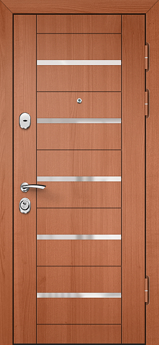Современная входная дверь с цилиндровым замком №21 сочетает строгую надежность металлической конструкции и аккуратный внешний вид. Каркас из профильной трубы и лист стали толщиной 2 мм образуют прочный щит, усиленный ребрами жесткости и блокираторами. Накладки из МДФ придают полотну более «домашний» облик: материал не только эстетичен, но и практичен — ПВХ-покрытие стойко переносит небольшие повреждения и сохраняет первозданный вид долгие годы. Такая дверь подходит для квартиры, офиса или частного дома, где важно совместить защиту и стиль. Цилиндровый замок обеспечивает удобное и надежное закрывание, а два контура резинового уплотнителя защищают от сквозняков и лишнего шума. При желании возможно дополнить конструкцию тепло- и шумоизоляцией или установить замки другого типа, включая современные электронные системы. Современная входная дверь с цилиндровым замком №21 от производителя: быстрое изготовление и монтаж в Королеве, индивидуальные размеры, широкий выбор материалов и фурнитуры, официальная гарантия до 10 лет.